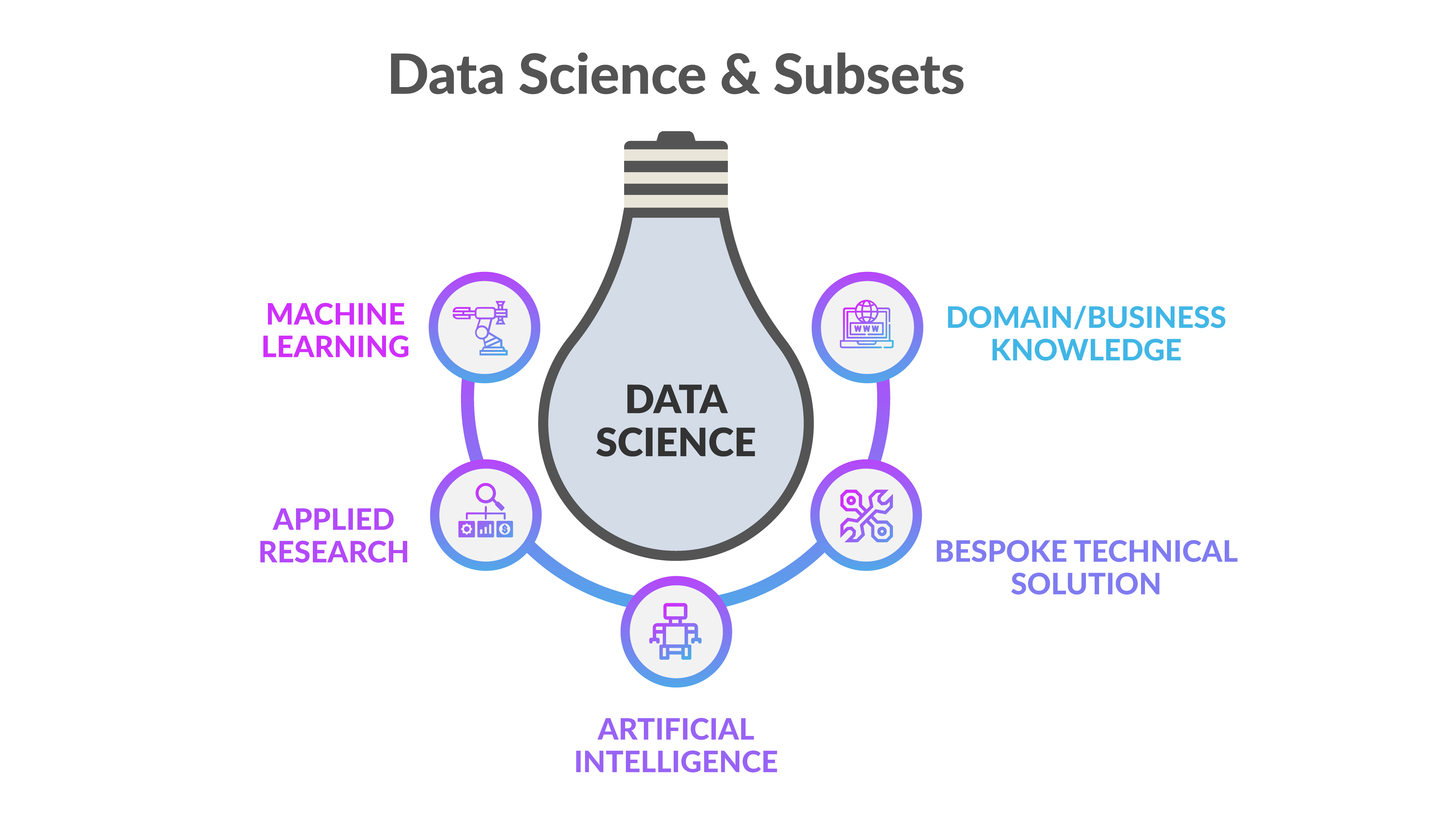 Machine learning is a subset of data science and AI, and includes: